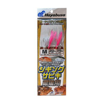 Sabiki especialmente diseñado para la pesca a jigging. Línea principal de 0,70m de 40lb montado con dos anzuelos tipo Hiramasa con puntitos e impredible reforzado en extremo inferior para conectar un jig.